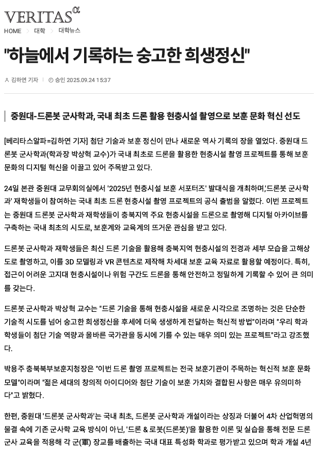 #1. 언론보도_하늘에서 기록하는 숭고한 희생 헌신