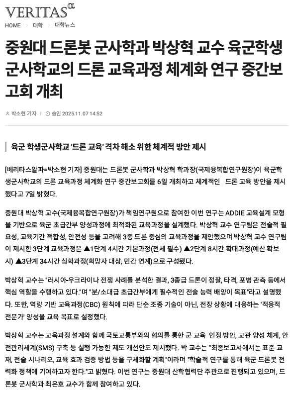 #2. 언론보도_육군학생군사학교_'드론' 교육과정 중간보고회